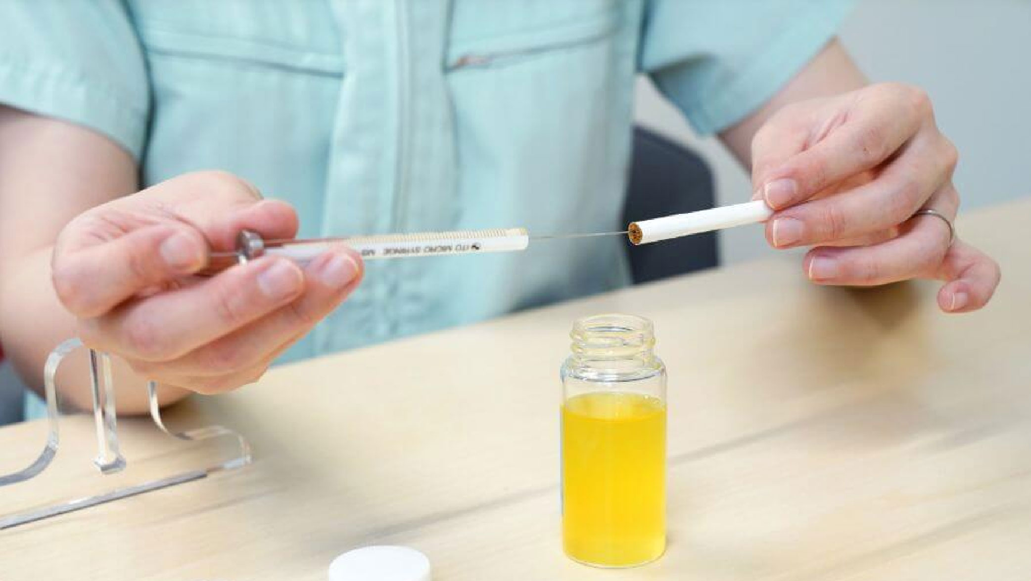 「調香」は、香素と呼ばれる香りの素材を組み合わせて香料をつくり、たばこ製品に銘柄ごとのキャラクターを彩っていく仕事。その