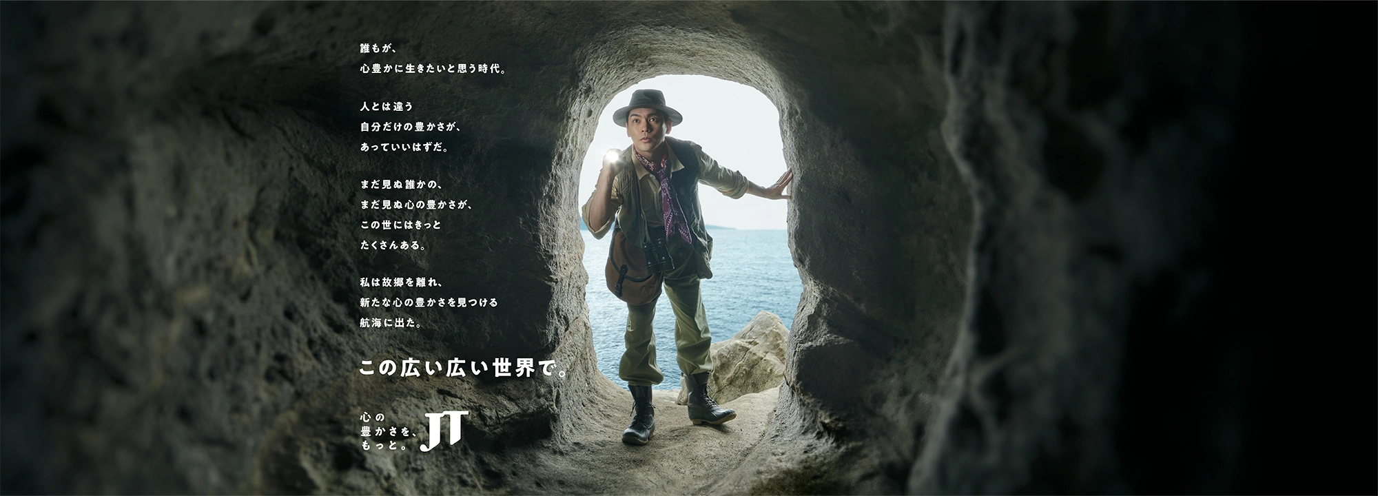 今回のCM「広い世界」シリーズは、JTグループの原点であるJT Group Purposeの考え方を伝えたいという思いから制作しました。JTは、一人ひとりの心の豊かさを応援したいと考えています。笑顔や感謝といった普遍的な価値に加えて、その人らしい心の豊かさにも光を当てたい。心の豊かさは人それぞれで、その時々の生き方や感情によっていくつも存在します。そんな多様な豊かさを応援する企業でありたいと願っています。