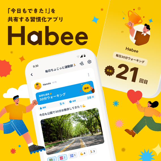 Habeeは、友達や同じ目標を持つ仲間と一緒に続けられる「習慣化」アプリです。