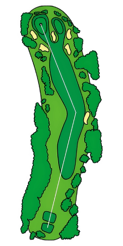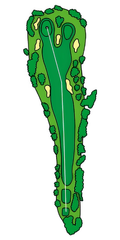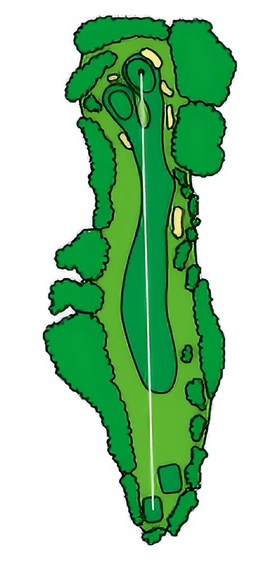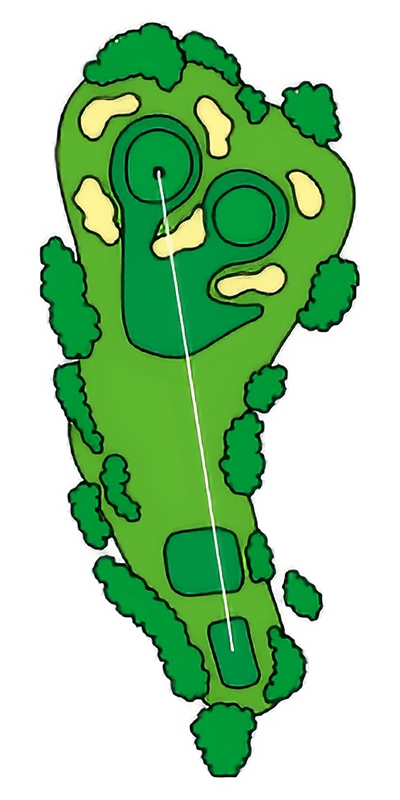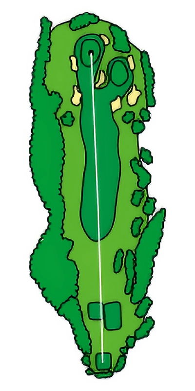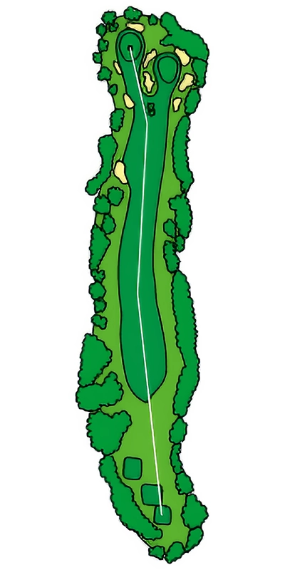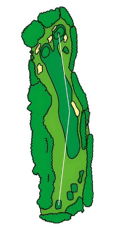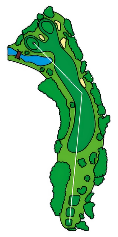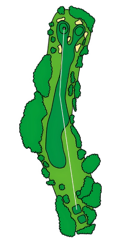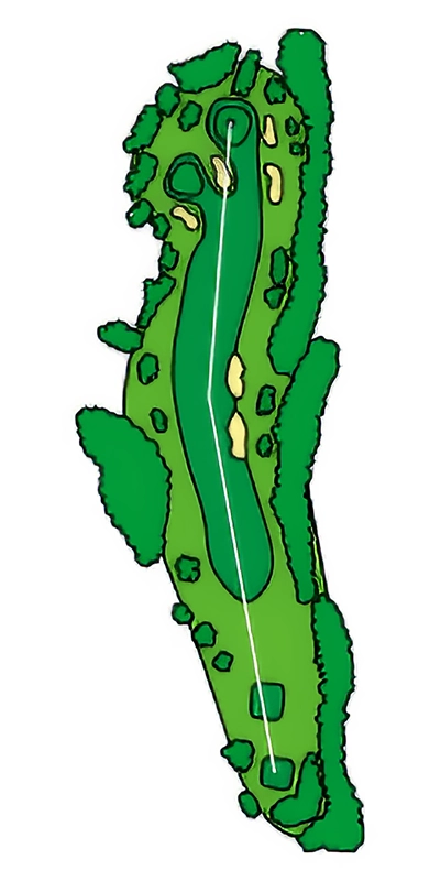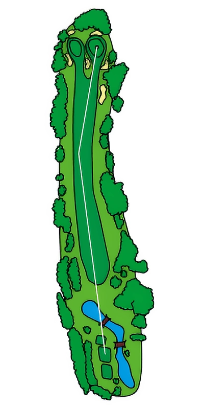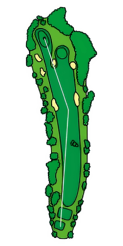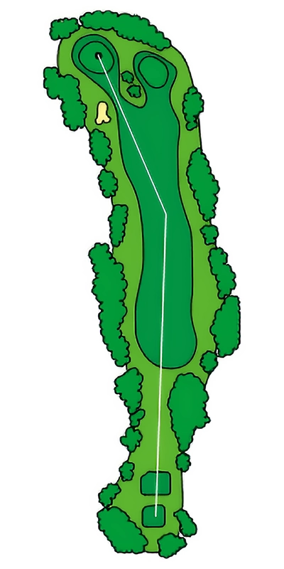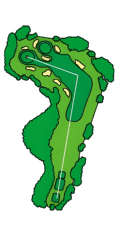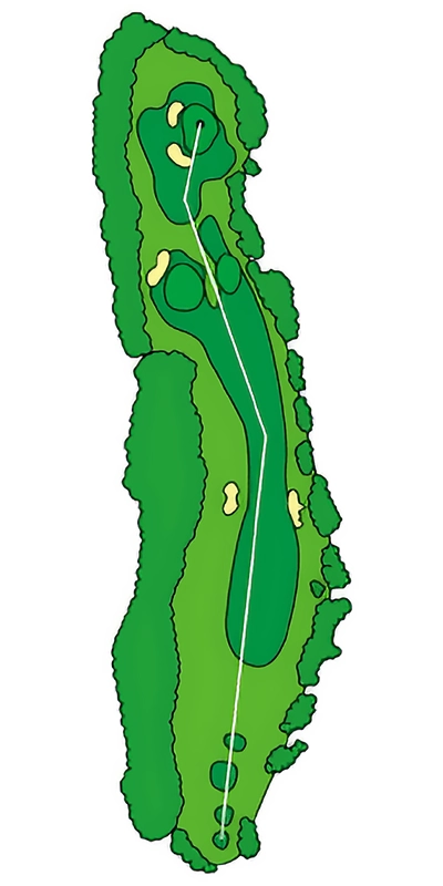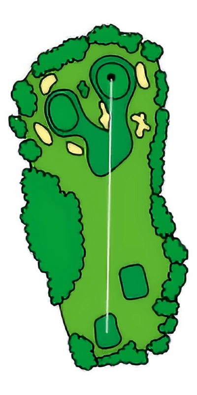 グリーンに近づくにつれて緩やかにS字にうねっているOUTコース唯一のロングホール。 2024年から新グリーンとなり、2023年よりグリーン周りの難易度が数段上がっているため2オンを外した場合のアプローチショットがカギ。