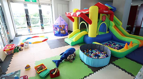 株式会社セリオによる託児サービスで保育士がお子様をお預かりします。楽しい遊具もご用意しております