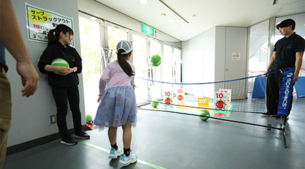 内容:試合が行われるコートでサーブにチャレンジ! 向かい側のコートに置かれたパネルを狙ってサーブを打っていただき、パネルにあたれば素敵な景品をプレゼントします!