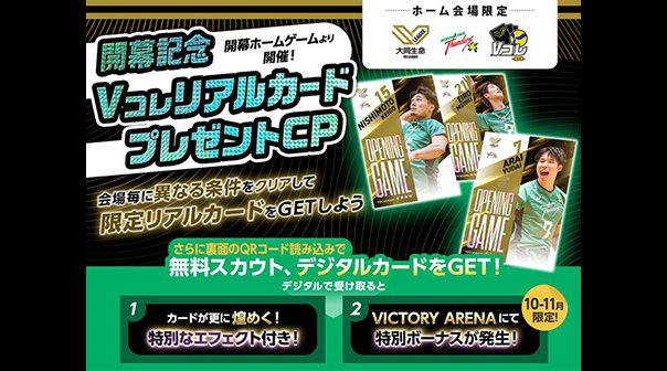 広島サンダーズのファンクラブ会員様方限定でVコレリアルカードを1枚プレゼントいたします。 - 1名様につき1枚お渡ししております。選手はお選びいただけません。