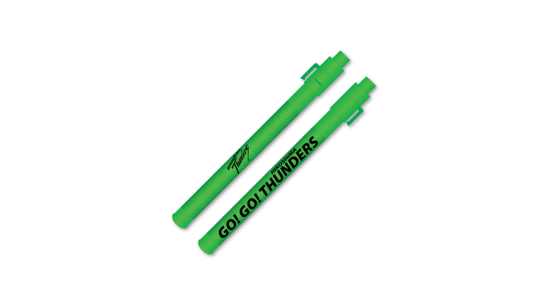 入場すると広島サンダーズのロゴが印字されたオリジナルペンライトが付いてきます。ペンライトを光らせて会場内を緑色に染めましょう!