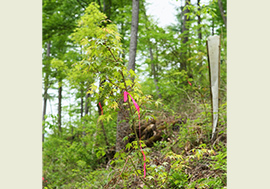 広葉樹には食害を防ぐ資材をつけて植栽