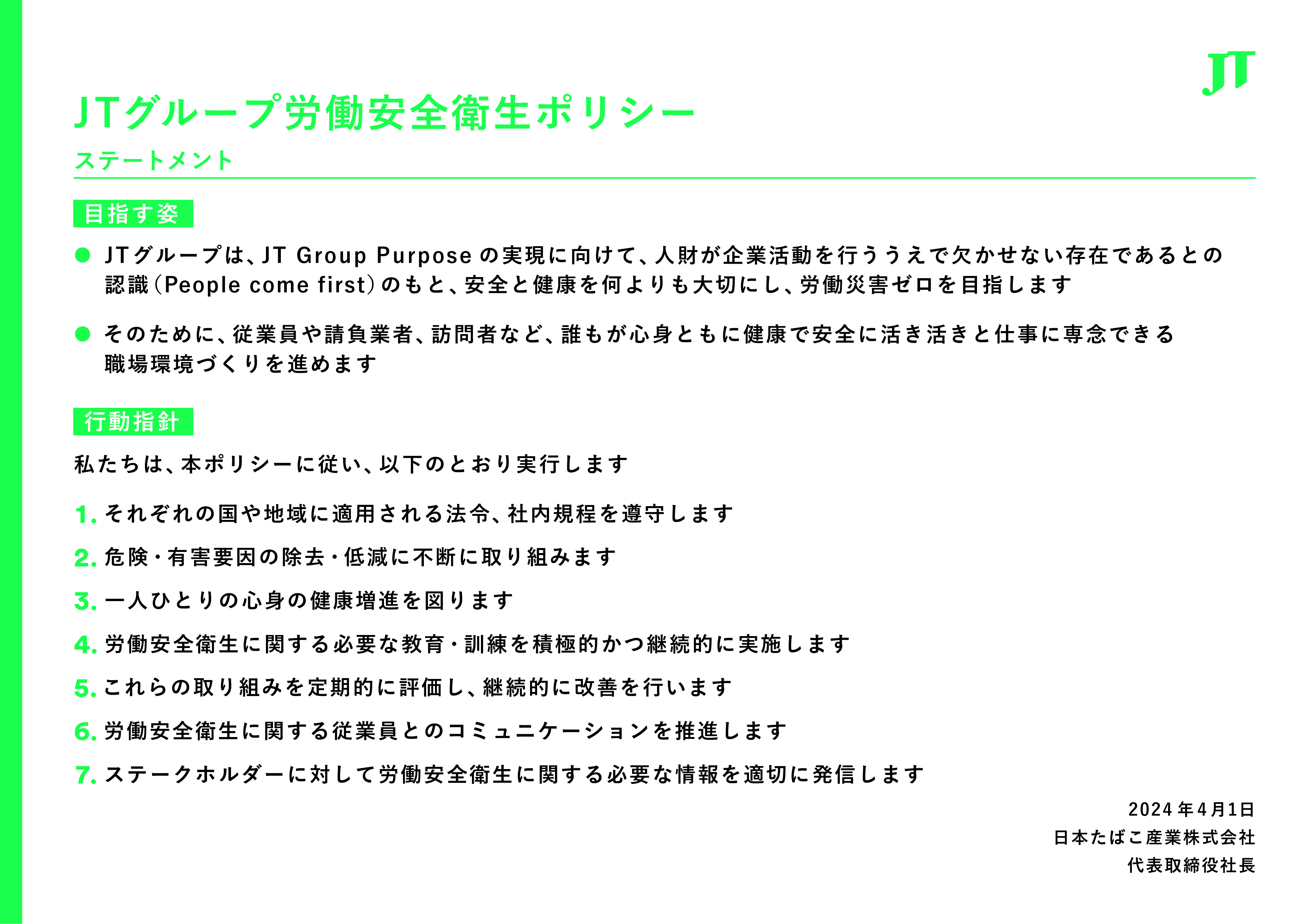 JTグループ労働安全衛生ポリシー